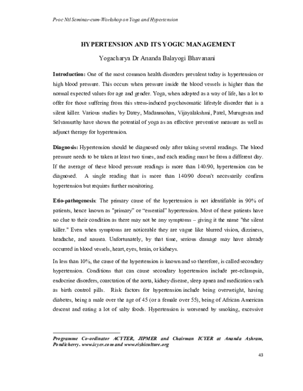 Pdf Hypertension And Its Yogic Management Ananda B Bhavanani Academia Edu